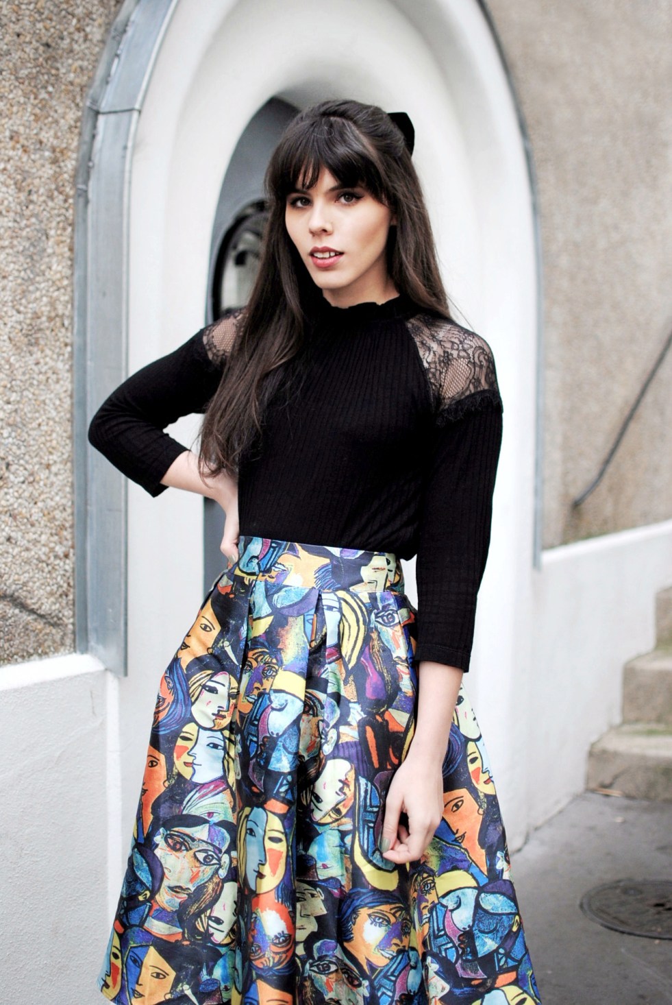 On hold – Jupe Picasso et haut dentelle